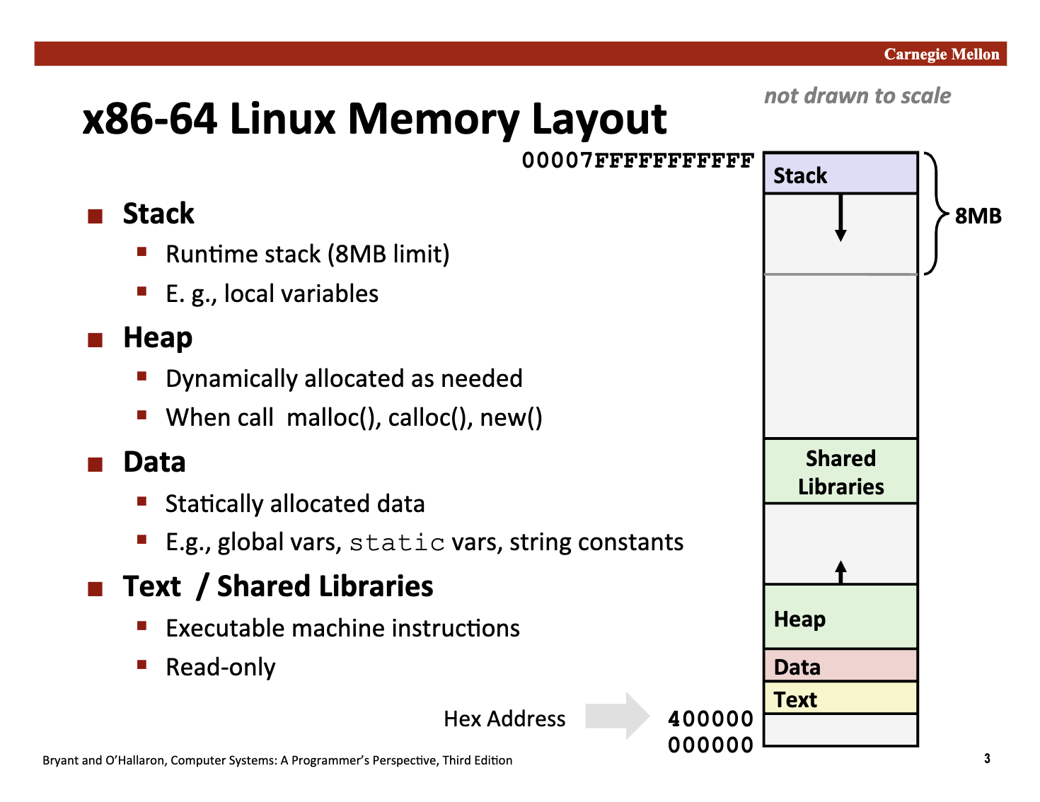 每次程序启动时,操作系统都会在栈的最顶端随机分配一段空余空间(Random allocation)。这会导致整个栈的所有地址向下平移。同一个局部变量 local 的地址从 0x7ffe… 变成了 0x7fff…。每次运行,地址都在变。